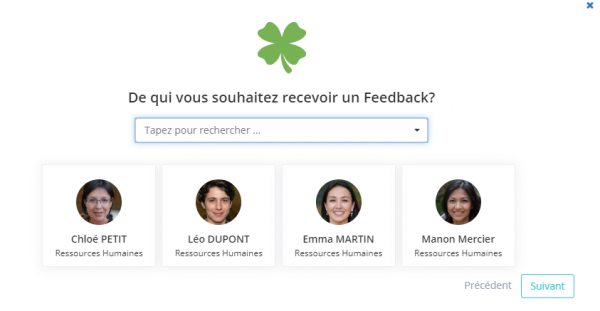 Les Feedbacks peuvent être notés et transmis au donneur. La tendance des Feedbacks de l’employé dans le système est générée. De cette manière, les employés peuvent améliorer la qualité de leurs commentaires.