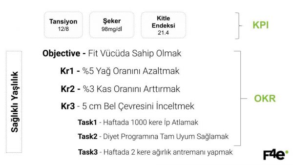• 90 yaşına kadarki süreçte sürekli olarak ölçülen kan değerlerinizi, kolestrolunuzu, kitle endeksinizi, şeker değerinizi ise KPI’larınız olarak tanımlayabiliriz.