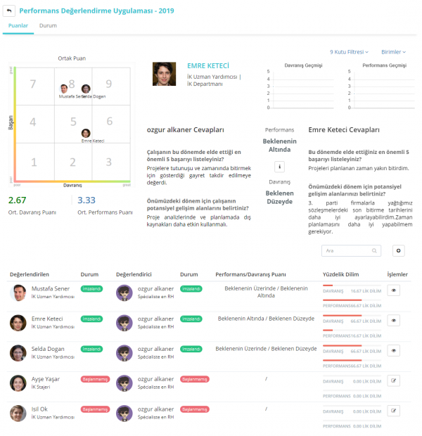 Çalışanların kurum geneli içindeki performansını ölçümleyin, değerlendirme durumlarını takip edin.